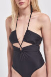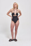ENTERA DE LYCRA LISA CON DETALLE DE CRUCE EN DELANTERO Y TIRAS PARA ANUDAR, PARTE INFERIOR ESTILO VEDETINA.. LA MODELO USA UN TALLE S Y MIDE 1.70 MTS.