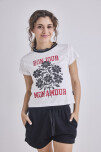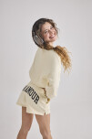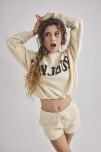 SHORT DE RUSTICO CON ESTAMPA EN ESPALDA, BOLSILLOS LATERALES. PERFECT MATCH CON BUZO CROP BONJOUR O CANGURO CIELO. LA MODELO MIDE 1,65 M Y USA TALLE S.