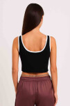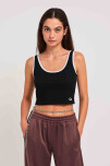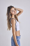 CROP TOP TIPO DEPORTIVO CON TIRAS LATERALES A CONTRATONO. LLEVA UNA ESTAMPA DE LOGO A TONO EN EL FRENTE. TIENE UN CALCE JUSTO AL CUERPO. LA MODELO USA UN TALLE M Y MIDE 1.70 MTS
