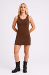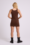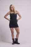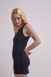 VESTIDO EN ALGODÓN CON LYCRA TIPO DEPORTIVO CON RECORTES LATERALES A TONO. LA MODELO USA UN TALLE S Y MIDE 1,70 MTS.
